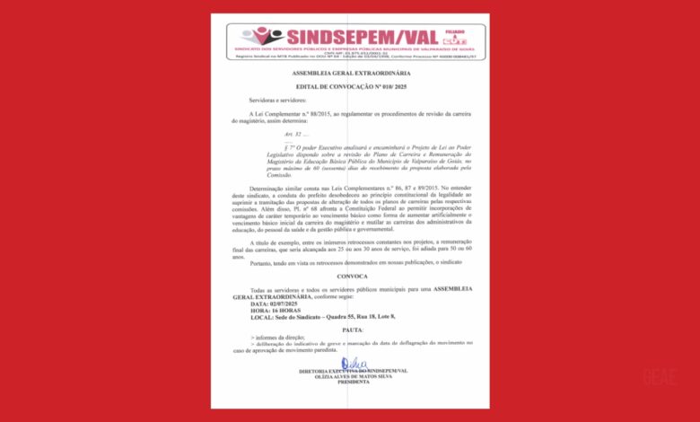 ASSEMBLEIA GERAL EXTRAORDINÁRIA: EDITAL DE CONVOCAÇÃO Nº 010/ 2025