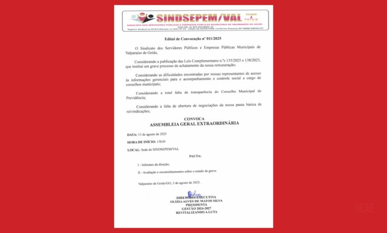O Sindicato dos Servidores Públicos e Empresas Públicas Municipais de Valparaíso de Goiás,