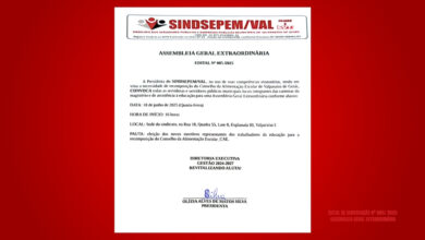 Por essas e por muitas outras razões, precisamos atualizar nossa pauta básica de reivindicações para o ano de 2026, para o que a Presidenta do SINDSEPEM/VAL CONVOCA todas as servidoras e todos os servidores públicos municipais para uma Assembleia Geral Extraordinária, conforme abaixo: