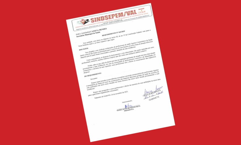 Esta entidade, com fulcro no disposto no inciso III, do art. 8º da Constituição Federal, vem junto a Vossa Senhoria expor e, ao final, requerer o que segue.